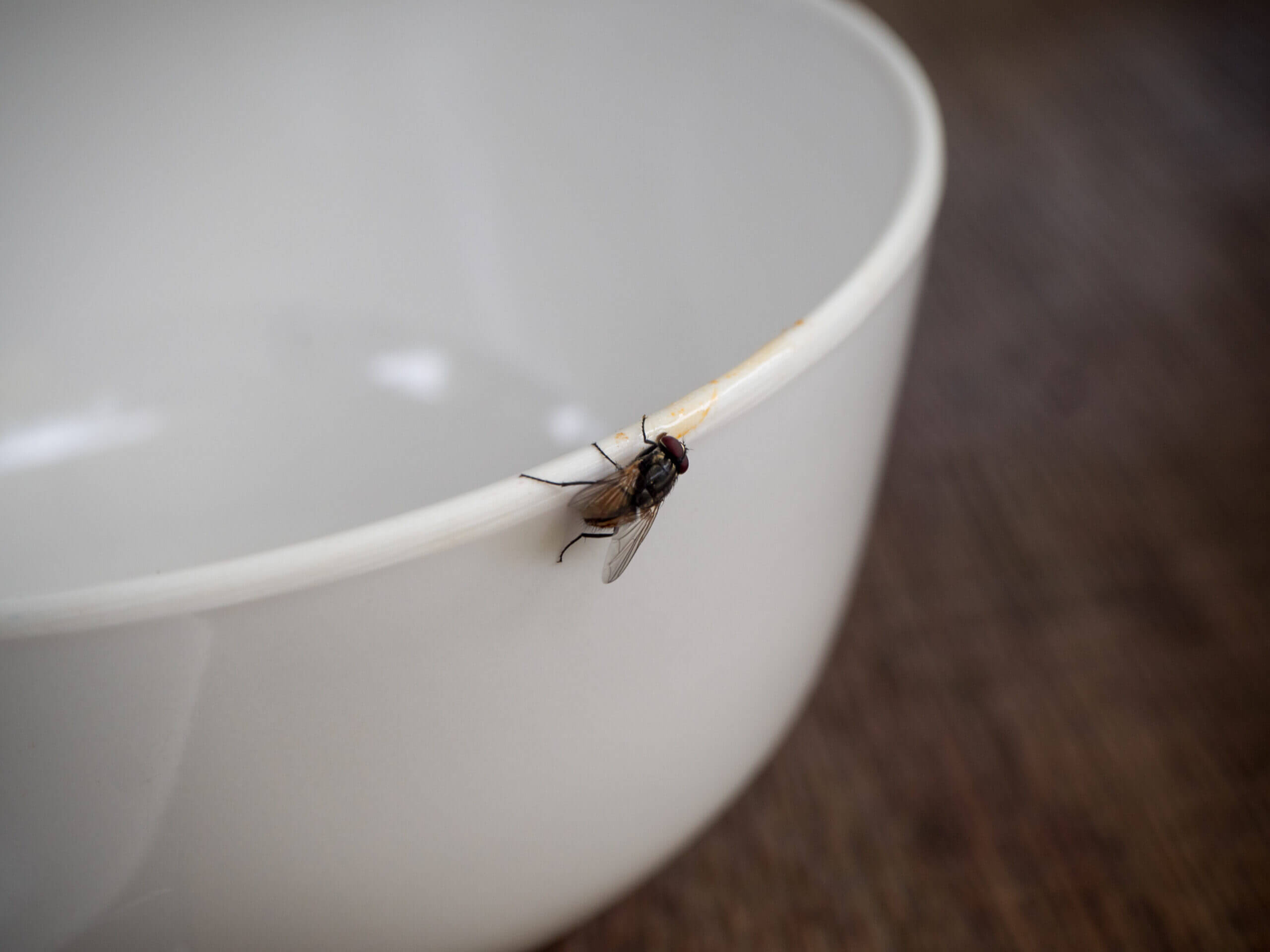 Matrester, oppvask og søppel er hovedårsaken til at fluer trives inne. Sørg for å tømme søppeldunken regelmessig og hold benkeplater og gulv rene.